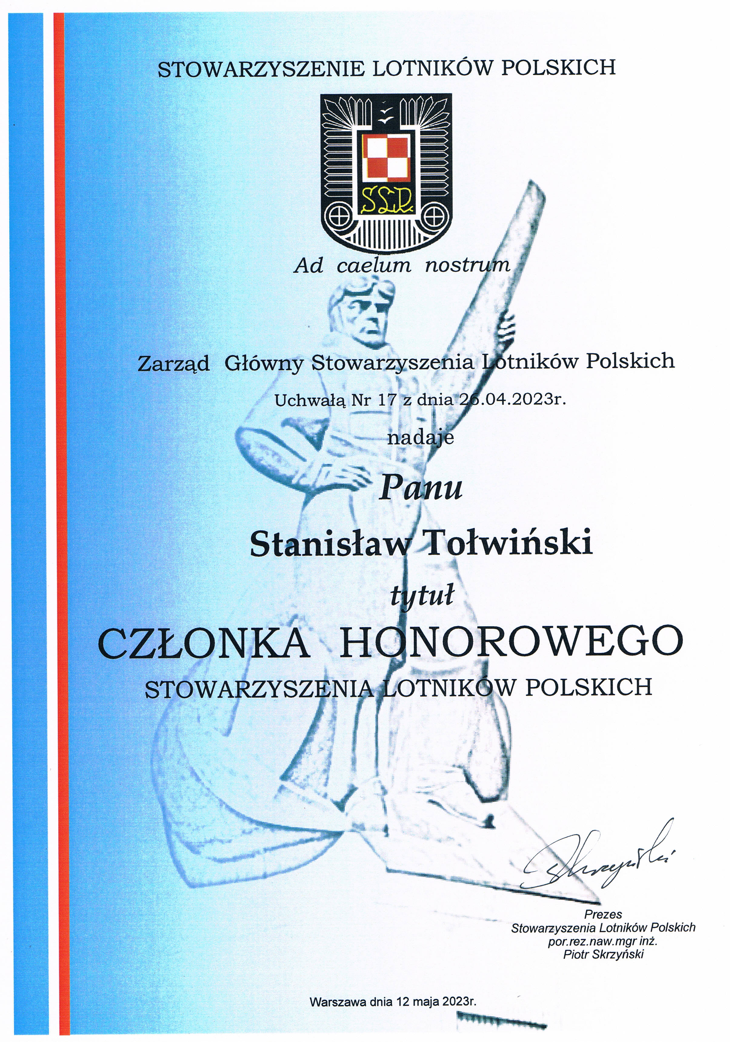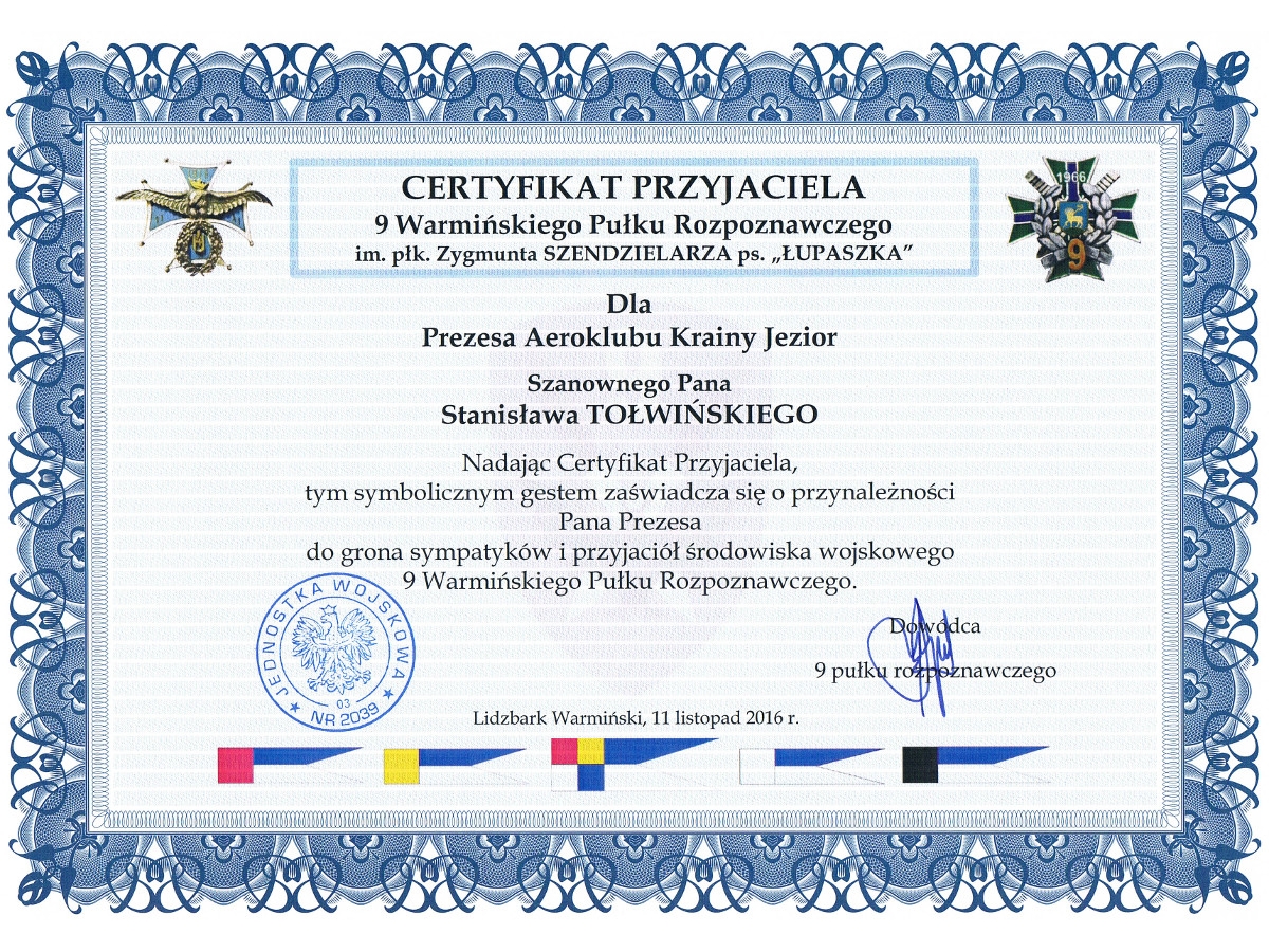A więc ma swoje istotne dokonania, jest animatorem i kreatorem działań na rzecz utrzymywania stałej przyjaznej współpracy ze Stowarzyszeniem Weteranów Lotnictwa ze Szwecji (które znakomicie promuje atrakcje Warmii i Mazur w Szwecji), Kaunas Aeroklubas i Mariampole Aeroklubas z Litwy (organizując wspólne inicjatywy), z Aeroklubem w Gwardijsku (Obwód Kaliningradzki) oraz lotniczym środowiskiem Czech – co bardzo dobrze służy postrzeganiu naszych inicjatyw na forum wymienionych narodowości.